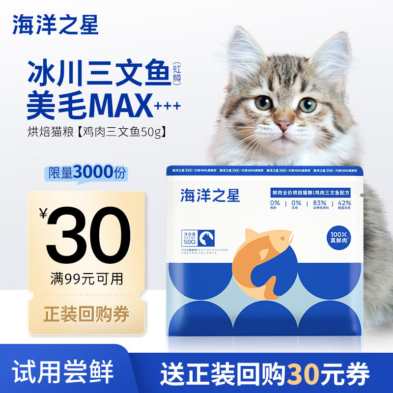 海洋之星 低温烘焙猫粮 全价成猫幼猫粮试吃50g鸡肉三文鱼