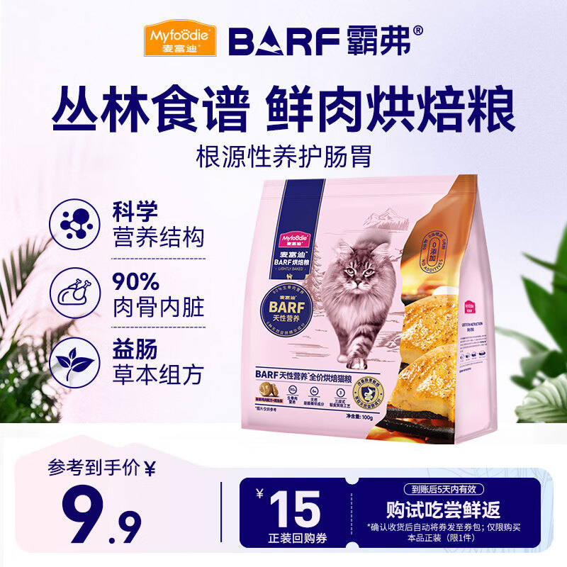 麦富迪猫粮 barf霸弗烘焙猫粮成幼猫粮生骨肉高蛋白养胃益肠鲜鸡肉100g