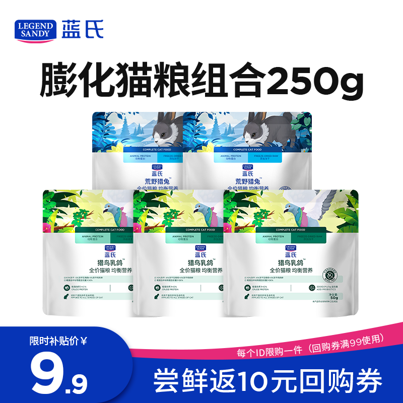 LEGENDSANDY蓝氏全价猫粮成猫幼猫生骨肉冻干粮 猎鸟乳鸽50g*3+荒野猎兔50g*2