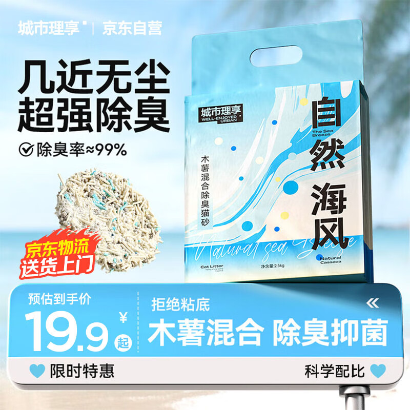 城市理享木薯混合海盐自然海风2.5kg*1猫砂强力除臭近无尘豆腐膨润土植物