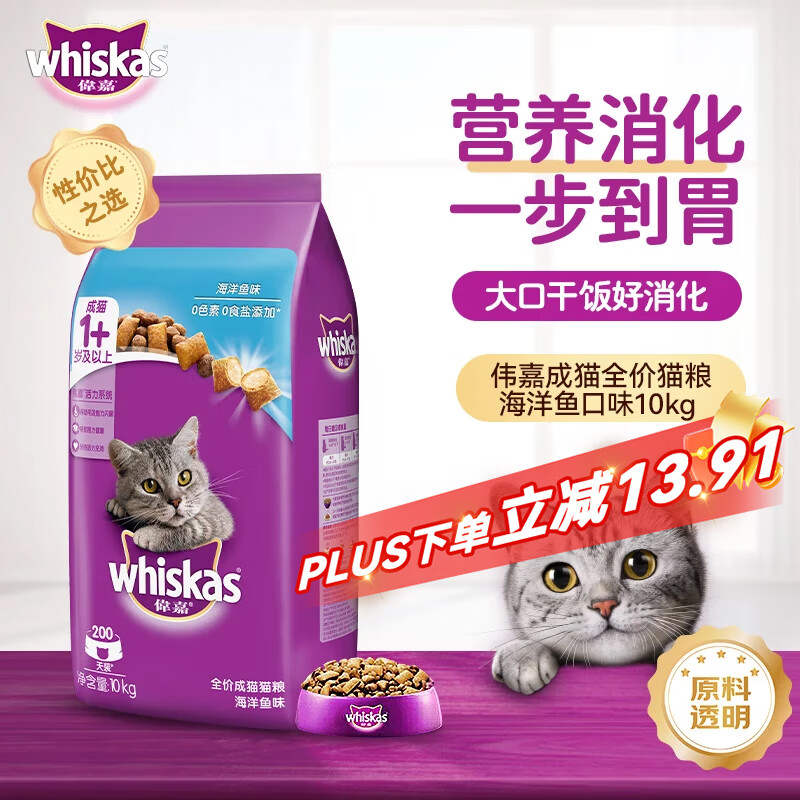 伟嘉猫粮成猫全价猫粮亮毛均衡营养10kg海洋鱼味夹心粮【原料透明】