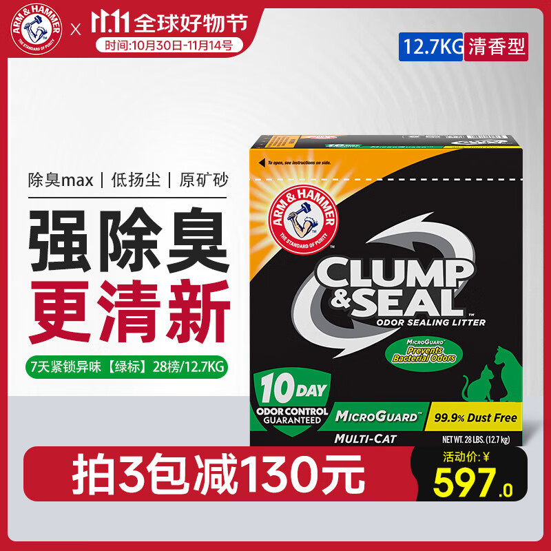 艾禾美(Arm&Hammer)铁锤猫砂黑盒绿标28磅