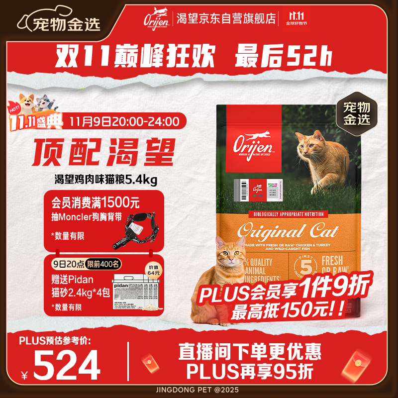 Orijen渴望猫粮 成猫幼猫粮 全价通用无谷原味鸡肉进口5.4kg效期26/5