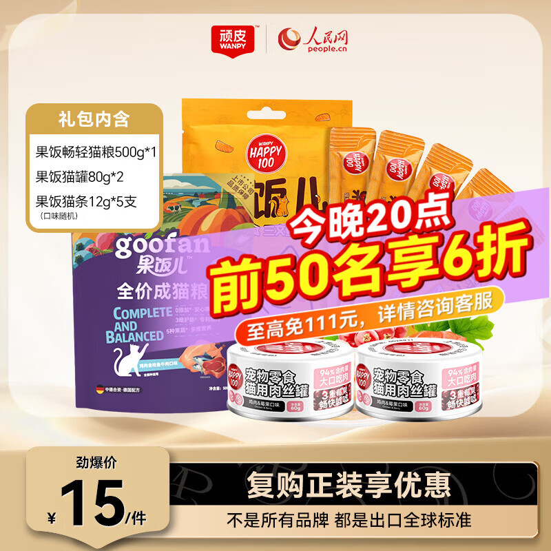 顽皮(Wanpy)果饭儿猫罐头猫咪汤汁猫罐湿粮补水宠物零食罐头80g 果饭全家桶【猫粮+猫罐+猫条】
