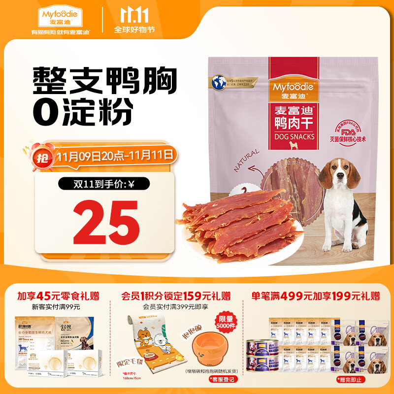麦富迪狗狗零食 奢华营养鸭肉干400g成幼犬磨牙训练奖励解馋宠物零食