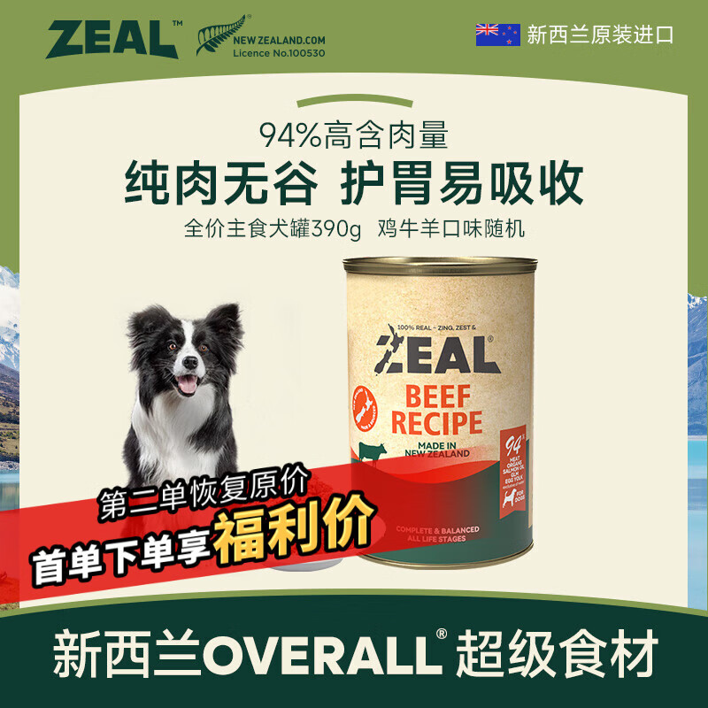 ZEAL【回购正装价更低】狗狗主食罐头390g随机成犬幼犬狗粮新西兰进口