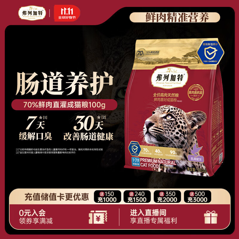弗列加特猫粮 全价鲜肉天然粮 肠道养护配方 成猫猫粮乳鸽100g