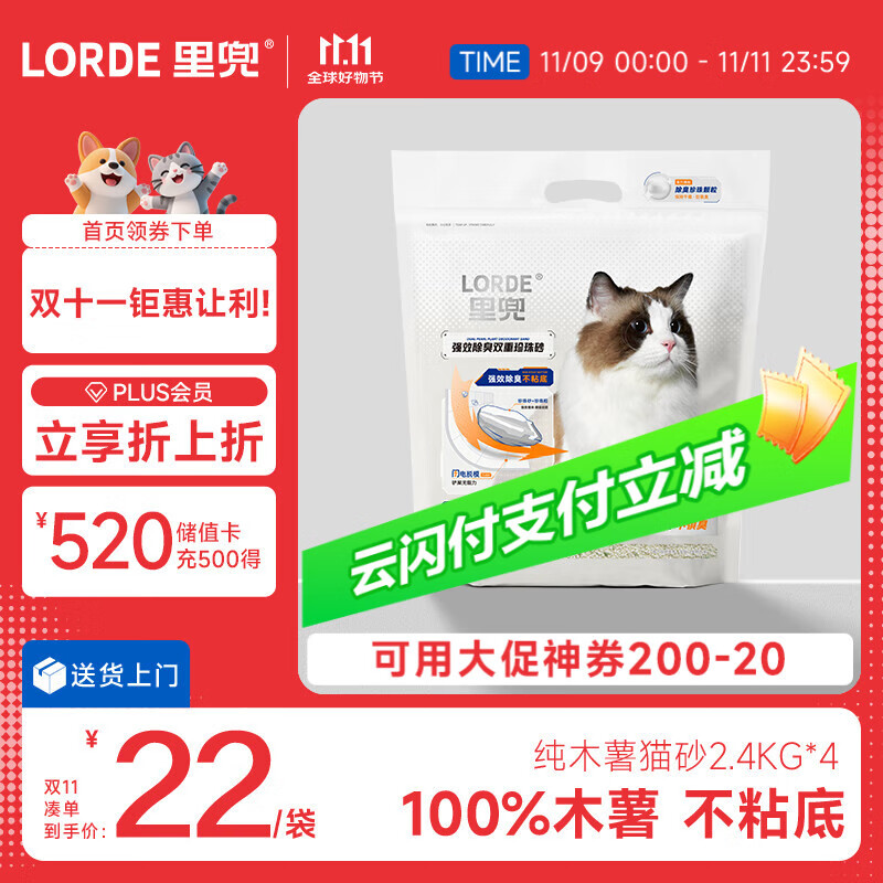 lorde里兜 纯木薯猫砂珍珠除臭不粘底不可冲厕所2.4kg×4袋【热卖】