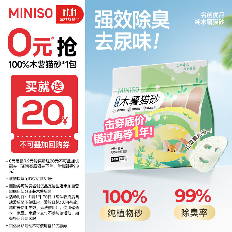 名创优品猫砂木薯猫砂次日达京东自营猫砂除臭纯木薯植物猫砂不沾底*1包