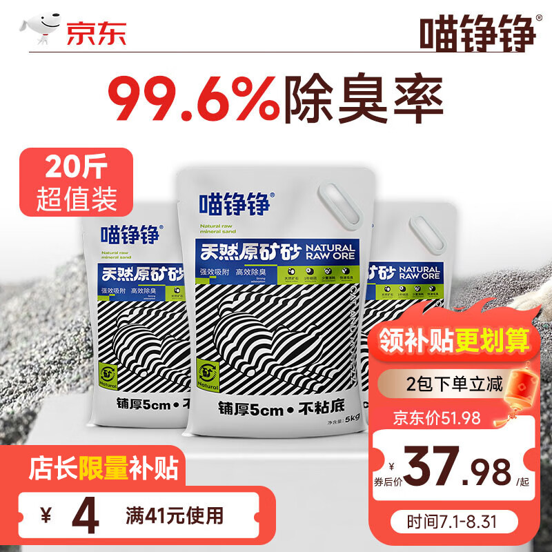喵铮铮天然矿砂猫砂猫咪除臭强力除味低尘吸水快速结团遮臭用品矿物猫沙 天然原矿砂5kg 1包