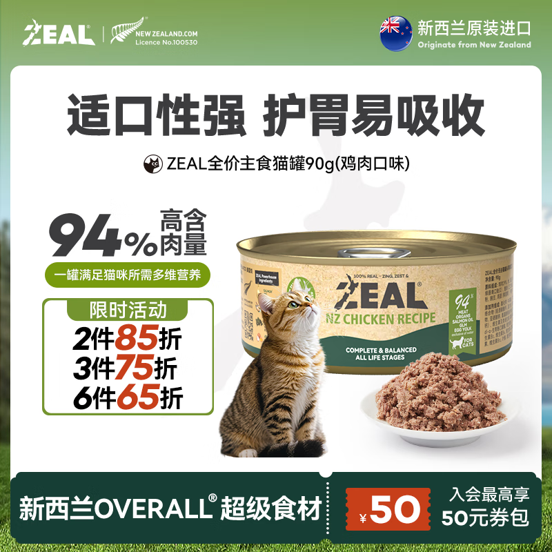 ZEAL猫罐头主食罐真致新西兰进口主食罐头猫咪猫粮90g鸡肉口味