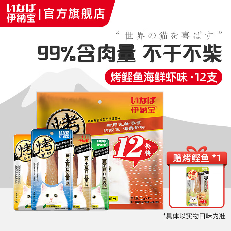 伊纳宝伊纳宝CIAO烧鱼柳鲣鱼条小鱼干猫零食烤鲣鱼12只装肉条 海鲜虾味10g*12支