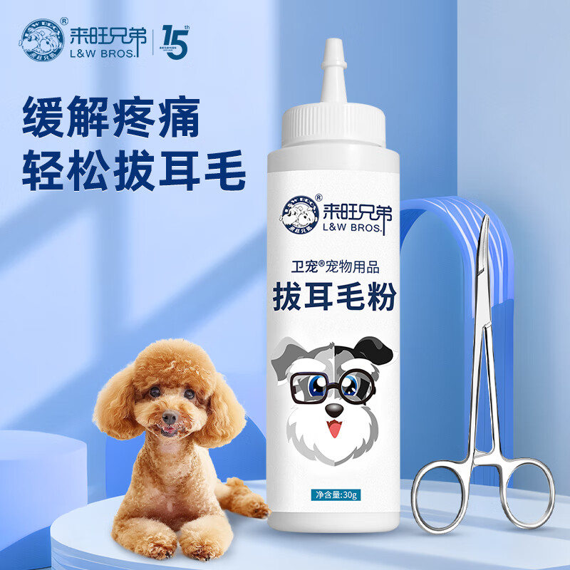 来旺兄弟狗狗拔耳毛粉耳毛钳弯头套装预防耳螨猫耳朵清洁耳垢