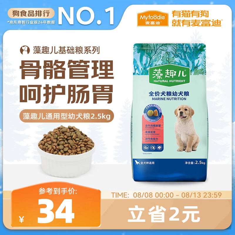 麦富迪狗粮 藻趣儿狗粮幼犬粮牛肉螺旋藻 呵护肠胃2.5kg