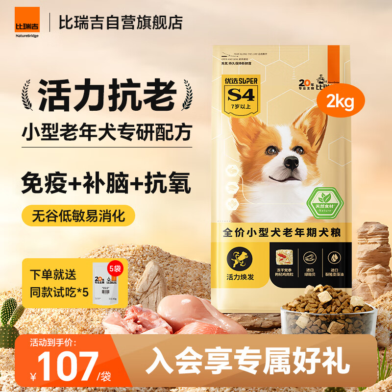 比瑞吉狗粮优选系列小型犬老犬草本冻干党参枸杞藻油虾青素维D2kg7岁+