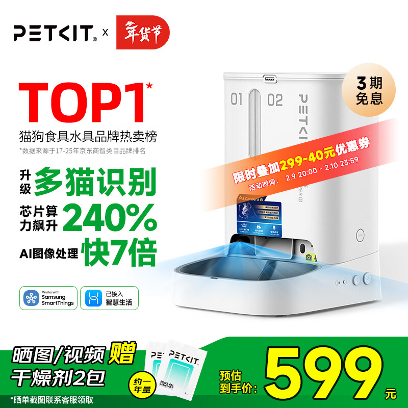 小佩AI宠物智能自动双子星喂食器可视版2代 多猫识别(支持鸿蒙智联)