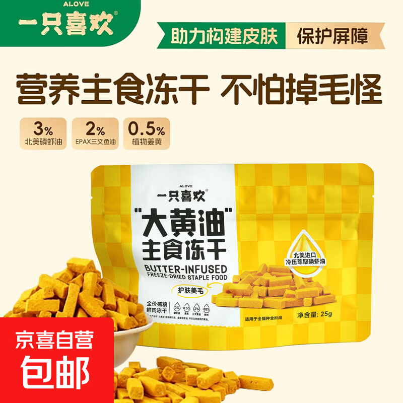 大黄油全价猫粮营养增肥鲜肉主食冻干鱼油磷虾美毛护肤 小黄油25g 1袋-试吃体验