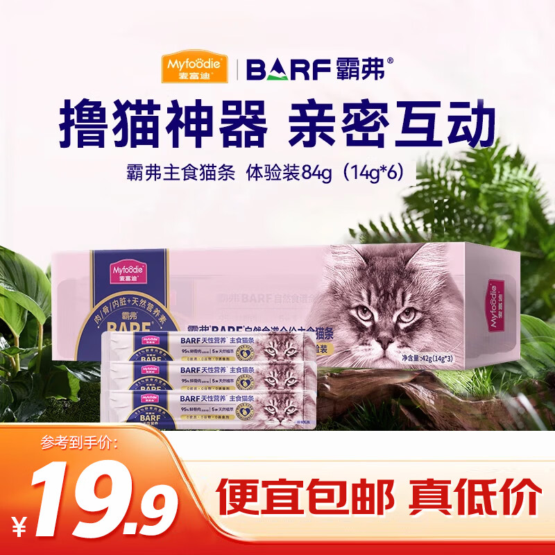 麦富迪猫条 barf霸弗主食猫条成幼猫咪零食湿粮包 尝鲜装84g(14g*6)