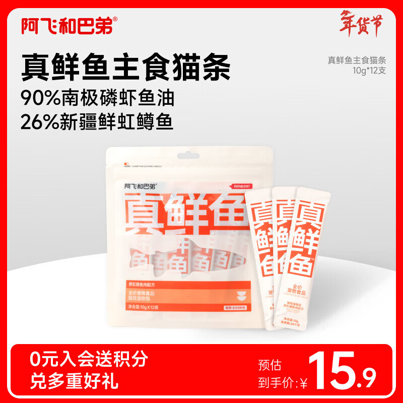 阿飞和巴弟(Alfie&Buddy)真鲜鱼主食猫条零食鱼油成幼猫营养猫咪美毛专用防掉毛 【EPAX高纯度鱼油】主食猫条1袋 (10g*12支)