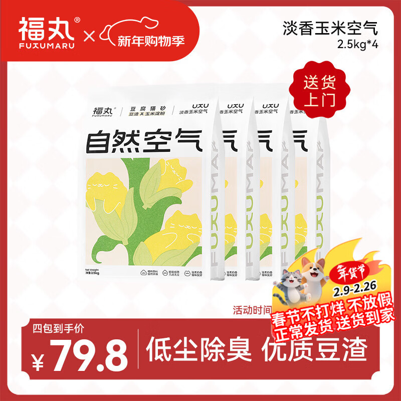 福丸自然空气玉米豆腐猫砂除臭低尘可冲厕所 玉米淡香 2.5kg*4包