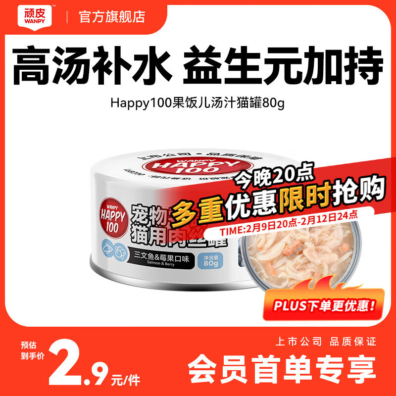 顽皮(Wanpy)三文鱼猫罐头80g(汤汁型) 猫咪零食猫粮湿粮