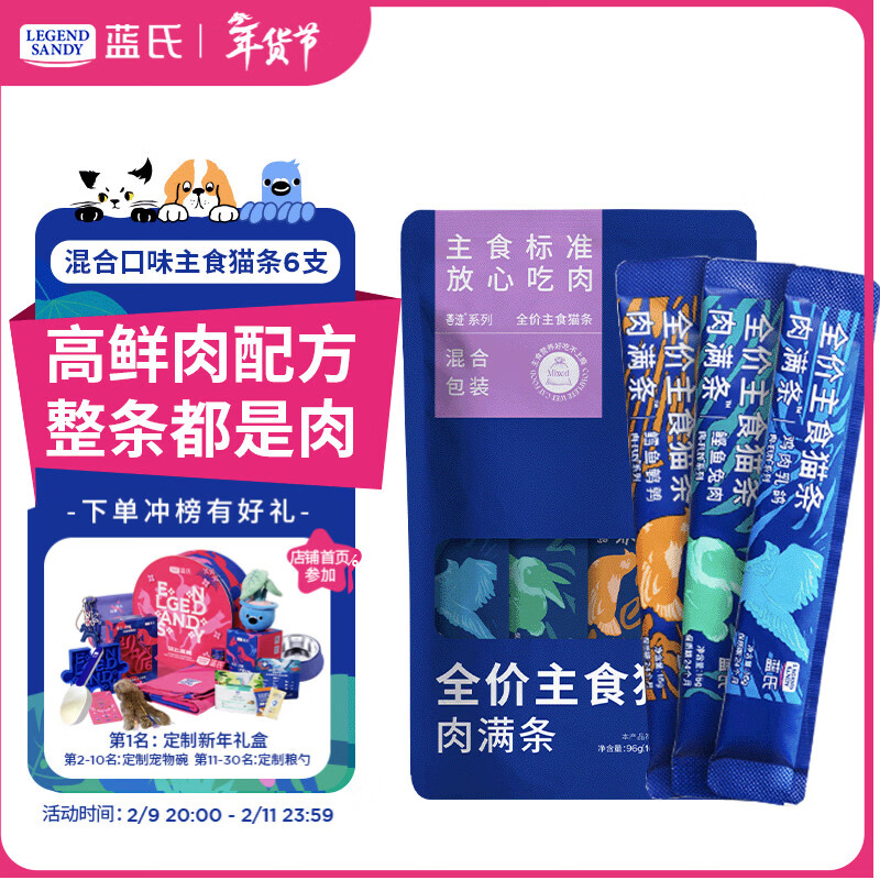 LEGENDSANDY蓝氏猫零食全价主食猫条成猫幼猫鲜肉猫湿粮罐头混合口味 16g*6