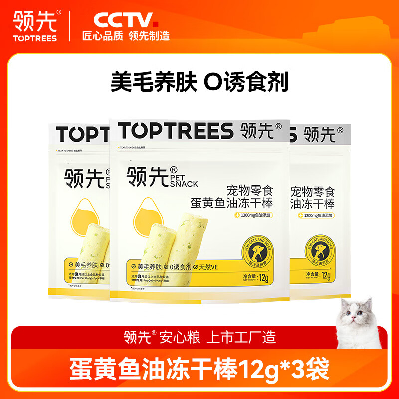 领先猫零食冻干猫草棒 鸡肉棒猫咪化毛排毛成猫幼猫吐毛球冻干棒 蛋黄鱼油棒12g*3(效期至25.10)
