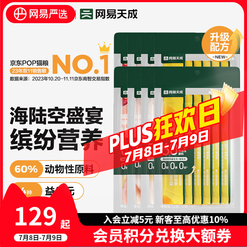 网易严选 海陆空盛宴猫条宠物零食猫湿粮成猫幼猫通用猫零食浓醇好肉营养 12g*6个 三文鱼+扇贝口味 6条装