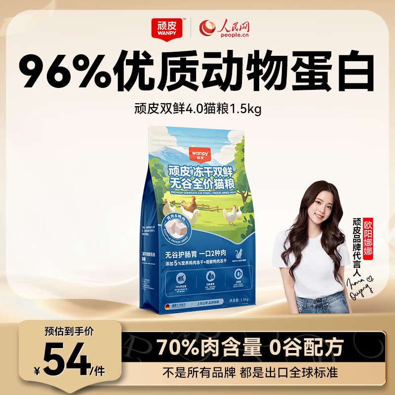 顽皮双鲜无谷猫粮4.0 添加鸡肉&冻干鸭肉双拼猫粮1.5kg