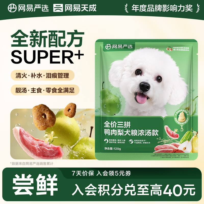 网易严选狗粮 全价三拼鸭肉梨犬粮 无谷降火祛泪痕 柯基柴犬泰迪贵宾犬 【升级浓汤款】120g*1袋