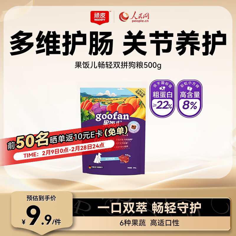 顽皮(Wanpy)果饭儿畅轻双拼粮全价成犬粮牛肉味边牧金毛中大型狗粮500g尝鲜装