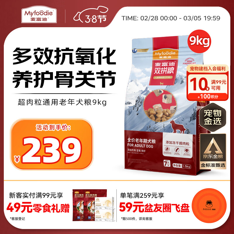 麦富迪狗粮 超肉粒冻干老年犬粮 专研7岁+抗初老 9kg/18斤【宠物金选】