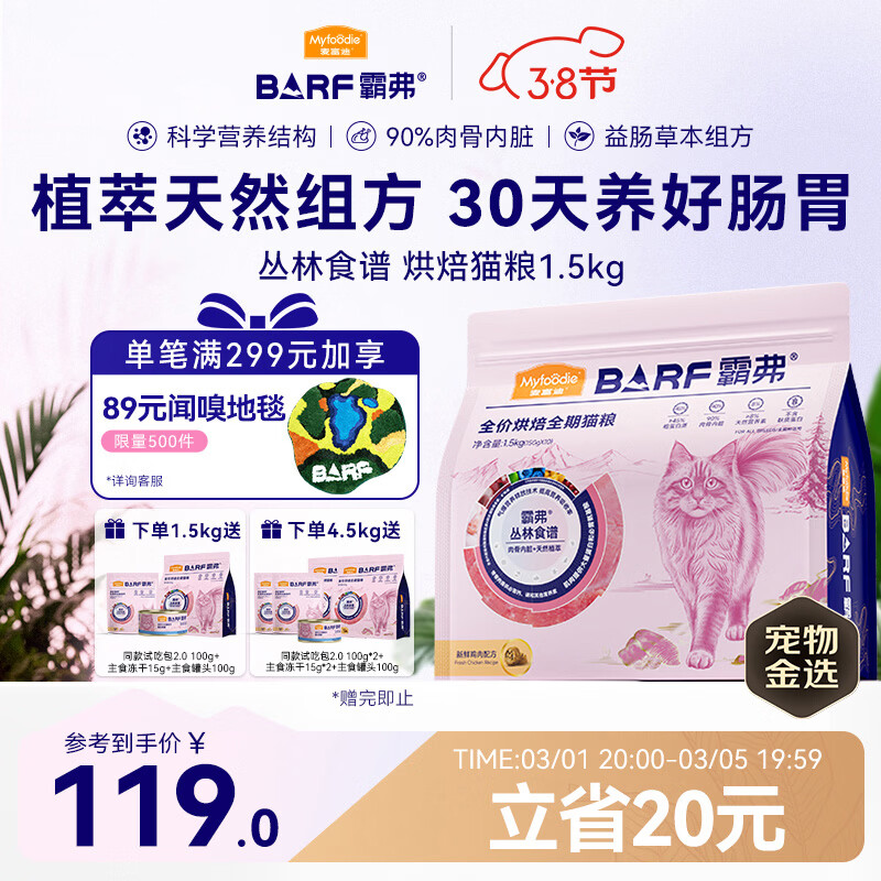麦富迪猫粮 barf霸弗烘焙猫粮全期成幼猫粮生骨肉养胃益肠鲜鸡肉1.5kg