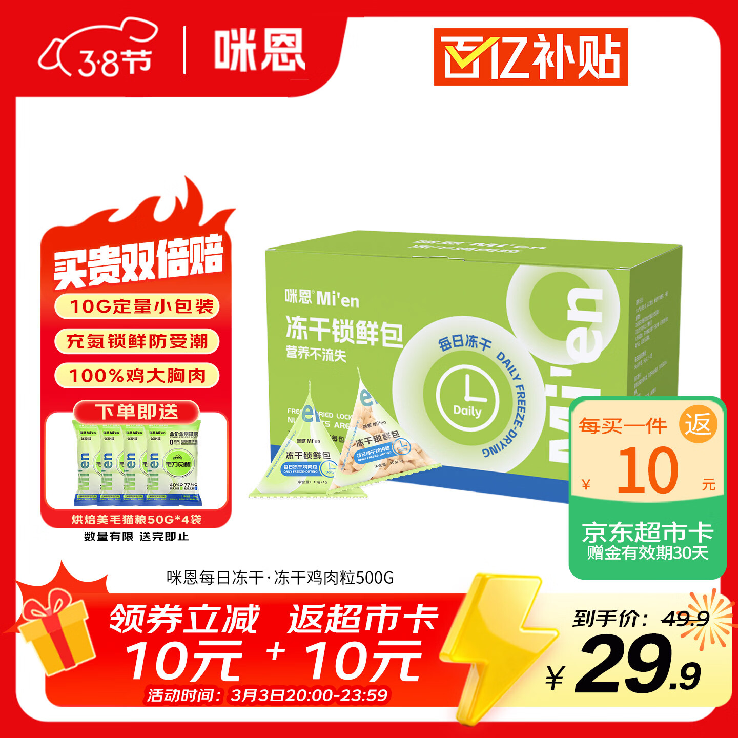 咪恩宠物零食冻干鲜鸡肉粒 100%纯肉猫咪零食每日冻干锁鲜包500g