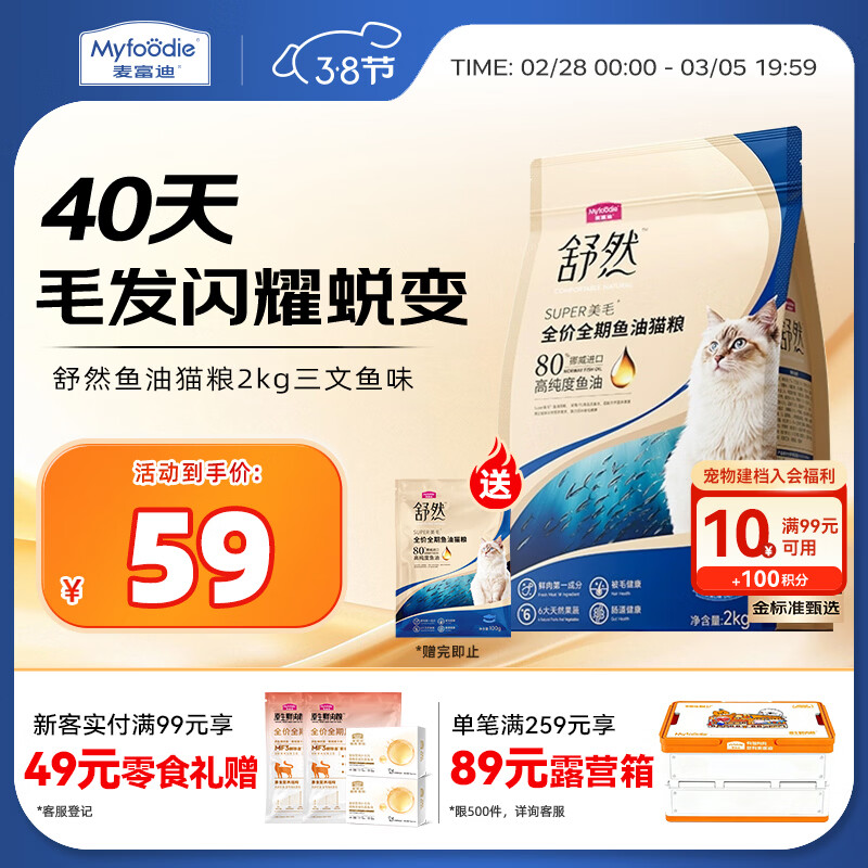 麦富迪猫粮 舒然鱼油美毛成幼猫粮高蛋白 美毛长肉亮毛护肤 三文鱼2kg