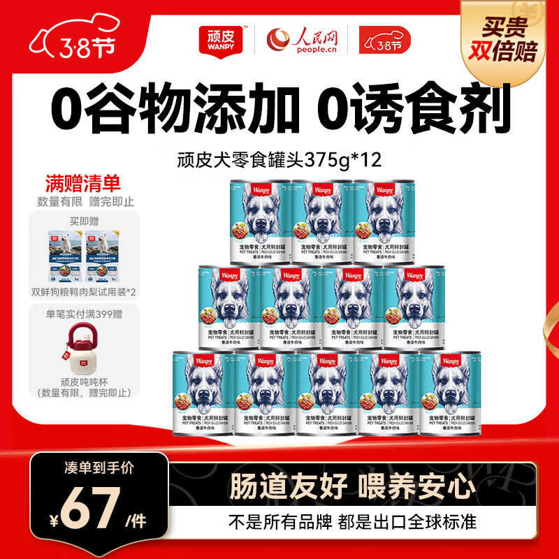 顽皮(Wanpy)狗狗罐头牛肉鲜封罐营养宠物零食375g*12罐 成犬狗狗零食湿粮