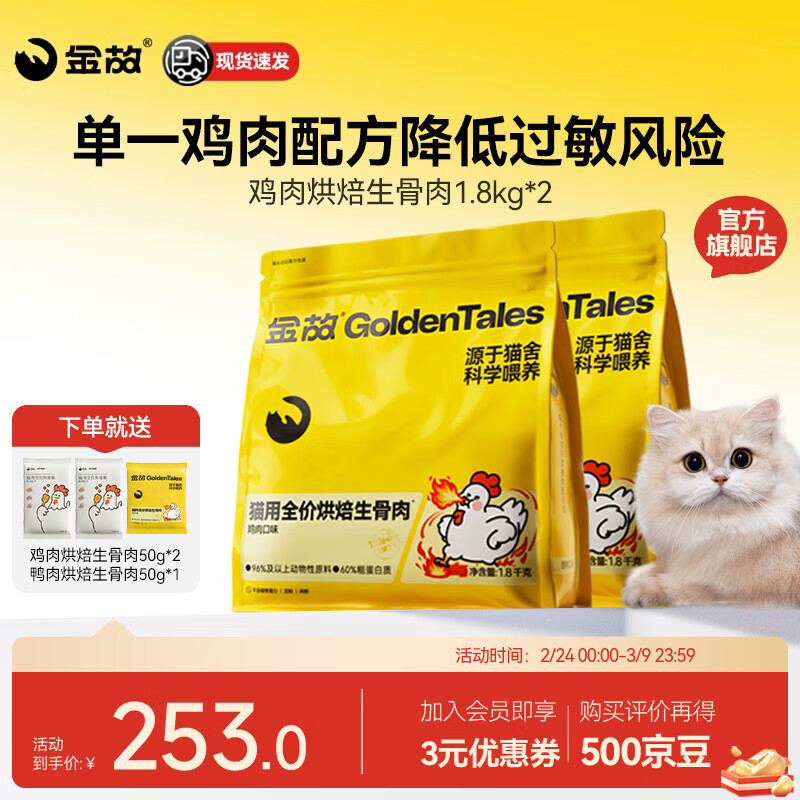 金故鸡肉鸭肉烘焙猫粮无谷幼猫成猫高蛋白鸡肉全价全阶段通用型0添加 鸡肉口味(1.8kg*2包)