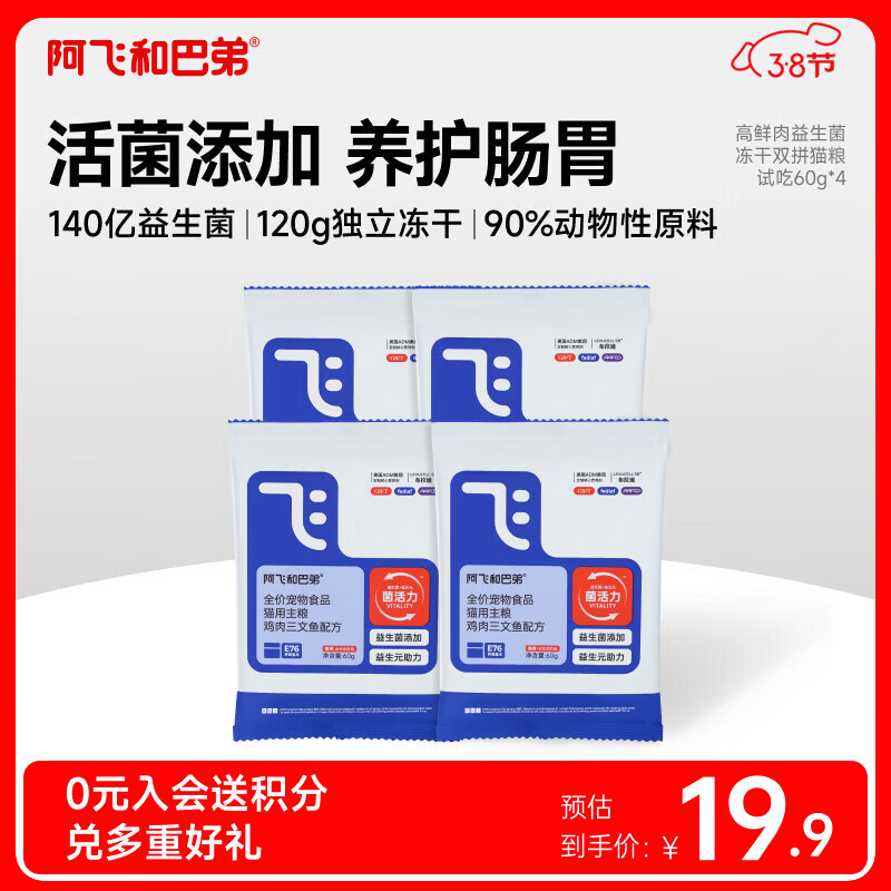 阿飞和巴弟猫粮E76纯享版 猫粮10kg 猫粮品牌十大排行成猫幼猫通用20斤批发 E76试吃装60g*4袋