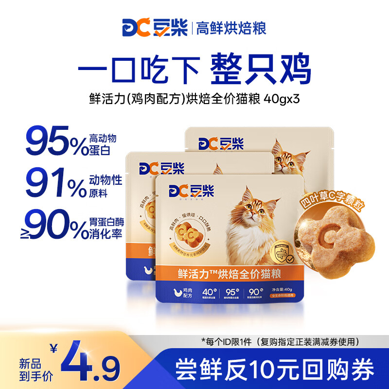 豆柴猫粮 低温烘焙猫粮 成猫幼猫粮试吃 全价鲜肉粮 鲜活力系列 【试吃】肠道养护丨鲜鸡肉120g