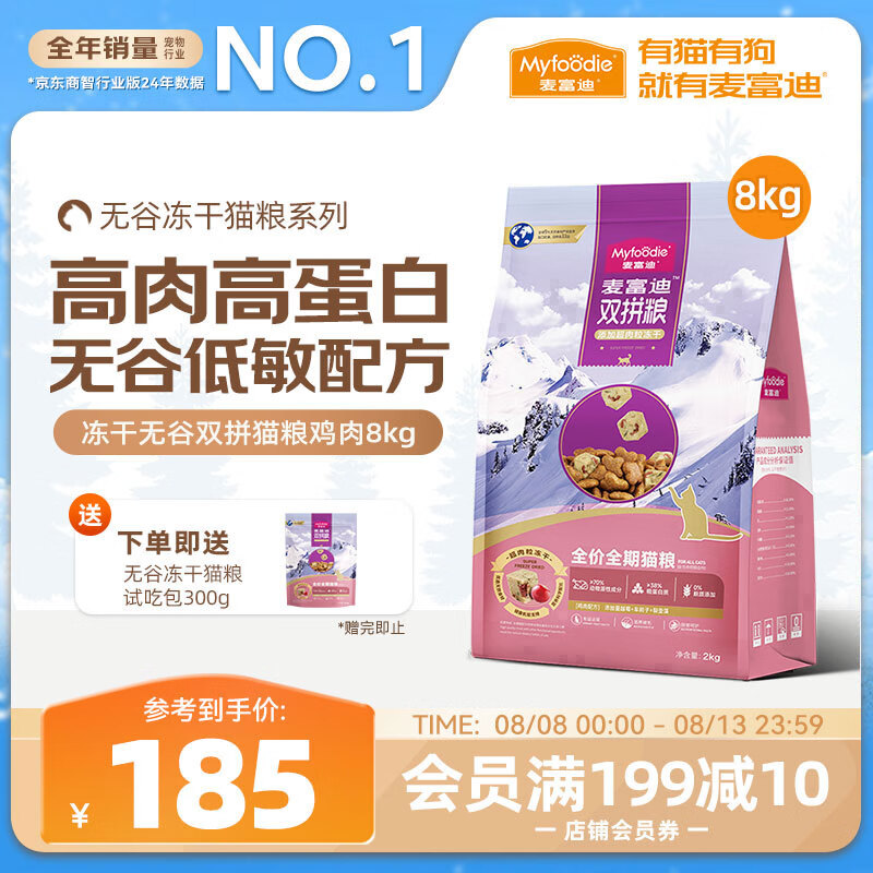 麦富迪猫粮 超肉粒无谷冻干粮高蛋白成幼猫粮低敏益肠 鸡肉8kg