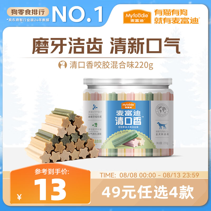 麦富迪 狗狗零食 清口香混合味220g成幼犬磨牙棒训练奖励洁齿宠物零食