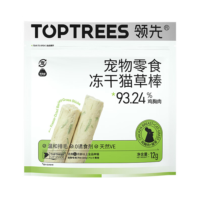领先(Toptrees)猫零食冻干猫草棒 羊奶猫草棒猫咪化毛排毛WT 鸡肉猫草棒12g*3(效期至26.4)