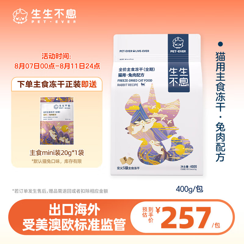 生生不息主食冻干猫粮主食成猫幼猫全价生骨肉猫粮兔肉配方400g