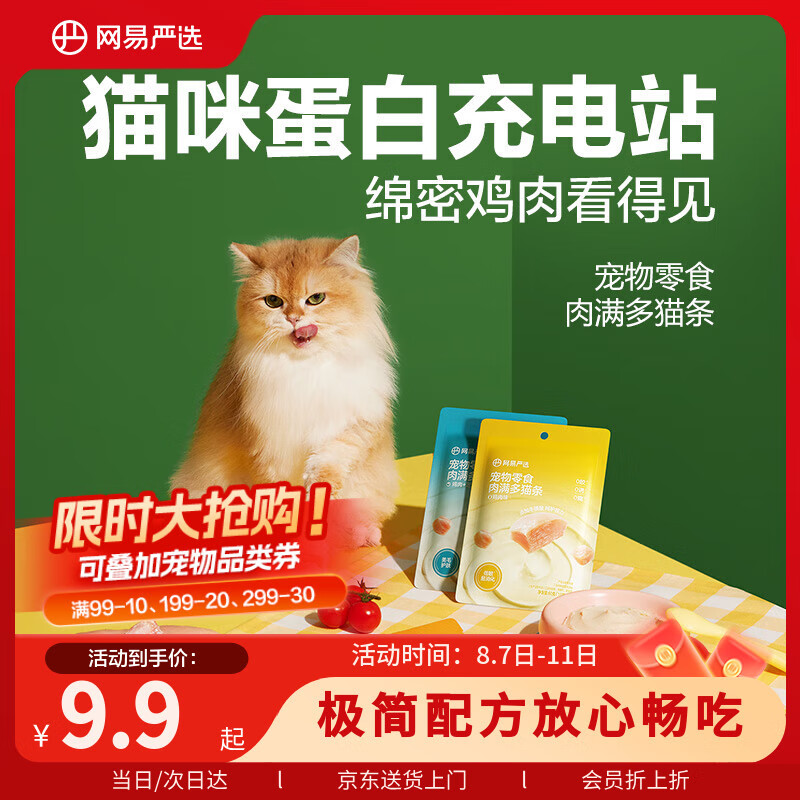 网易严选肉满多猫条成猫幼猫通用猫咪零食湿粮猫条鸡肉+三文鱼味 10g*6条