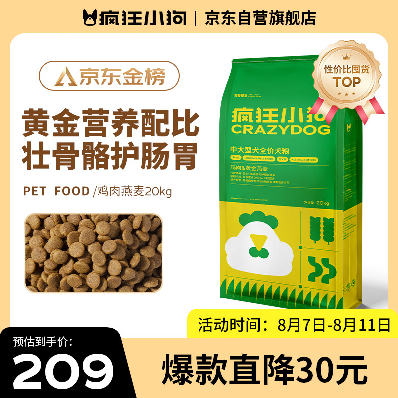 疯狂小狗中大型犬狗粮成幼犬40斤装宠物柯基边牧金毛拉布拉多鸡肉燕麦20kg