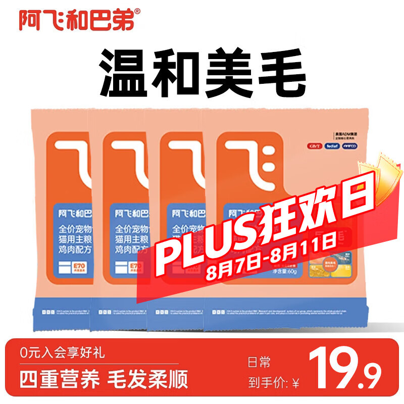 阿飞和巴弟巨美毛猫粮全价成猫幼猫通用型鸡肉配方美毛猫粮送同款试吃装60g 鸡肉配方试吃装60g*4袋