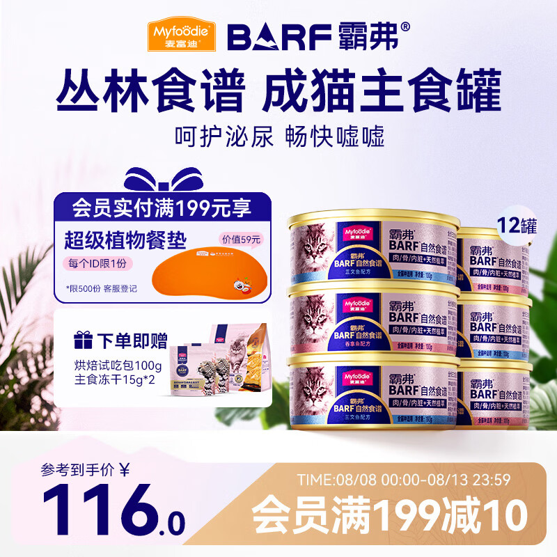 麦富迪猫罐头 barf霸弗主食猫罐头猫咪零食湿粮成幼猫呵护泌尿100g*12罐