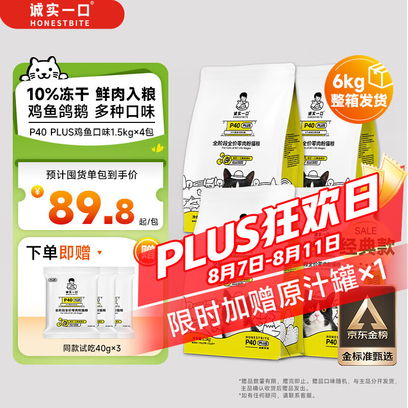 诚实一口经典P40 PLUS发腮鲜肉冻干成猫粮 猫干粮 鸡鱼口味 1.5kg*4袋