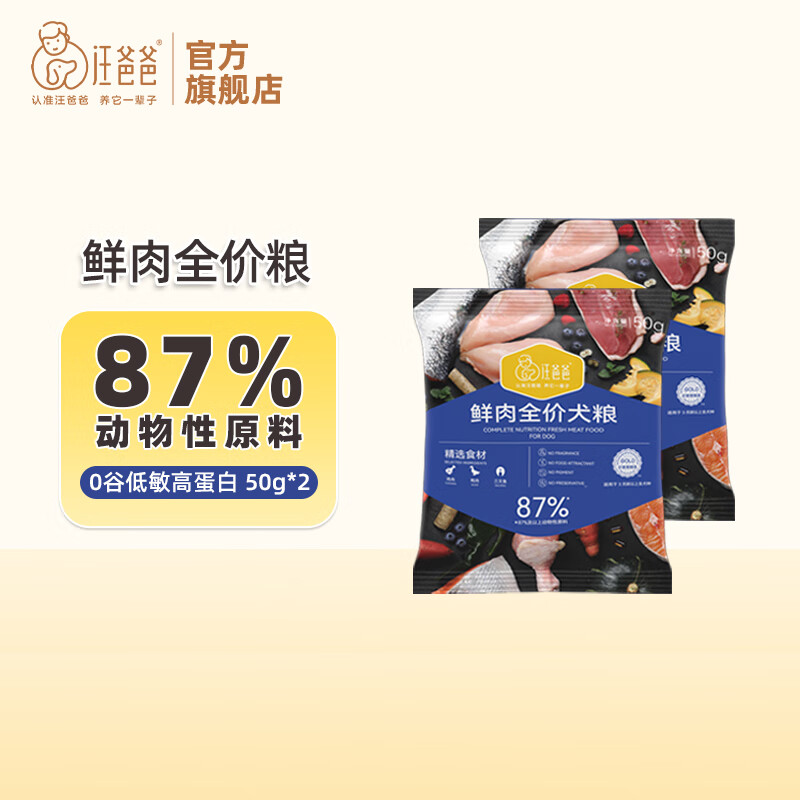 汪爸爸无谷鲜肉犬粮烘焙犬粮鲜肉幼犬粮天然无谷幼犬成犬换粮试吃 鲜肉犬粮试吃 100g【50g*2包】