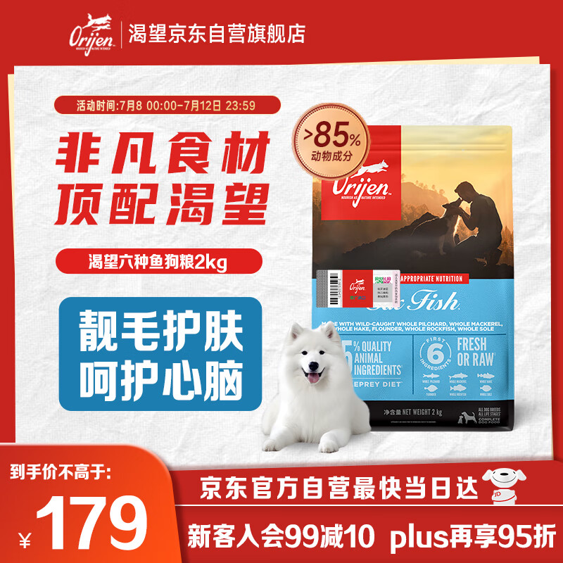 Orijen渴望狗粮 六种鱼 成犬幼犬全价鱼肉美毛进口犬粮2kg效期25/9
